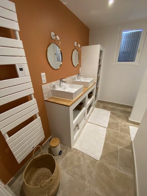 Vous profiterez d’un agencement intérieur fonctionnel avec la cuisine qui vous donne un accès direct à la terrasse et à l’espace extérieur. La pièce de vie est spacieuse et vous aurez accès à la wifi haut débit dans toute la maison et d’une tv connecté avec la box TV. Les chambres sont climatisées comme dans toute lamaison. 2 salles d’eau, 2 wc, une buanderie complète cet intérieur.